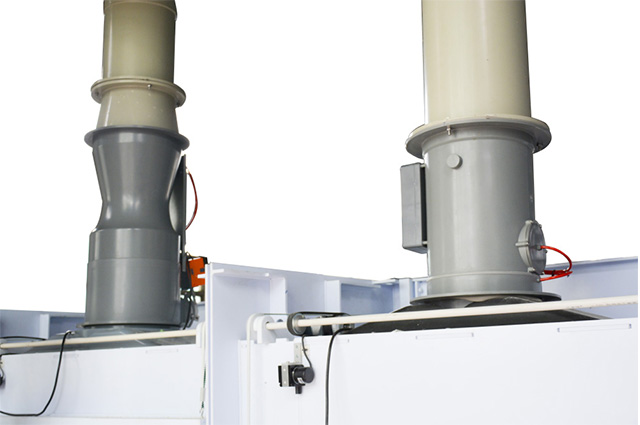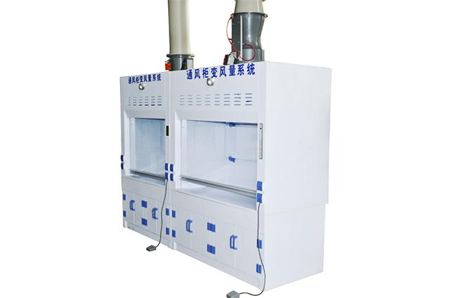 通風(fēng)柜變風(fēng)量系統(tǒng)配件:變頻控制系統(tǒng),包括變頻器、靜壓傳感控制系統(tǒng),控制面板三部分組成。系統(tǒng)安裝壓力傳感器,當(dāng)通風(fēng)柜排風(fēng)量增大,管道壓力差減少,此時(shí)變頻器根據(jù)壓差傳感器來控制信號(hào),通過內(nèi)部程序,改變輸出頻率,是頻率增大,從而電機(jī)轉(zhuǎn)速升高,管道壓差上升到設(shè)定點(diǎn)。采用定靜壓控制方法,在風(fēng)機(jī)排風(fēng)主管道上設(shè)置管道靜壓傳感器,通過控制器和變頻器調(diào)節(jié)風(fēng)機(jī)轉(zhuǎn)速,維持管道靜壓,從而達(dá)到滿足實(shí)際需要風(fēng)量的目的。例如:當(dāng)通風(fēng)柜的視窗拉高,此時(shí)排風(fēng)機(jī)管道內(nèi)靜壓減小,管道靜壓傳感器感覺到壓力變化,通過控制器和變頻器調(diào)節(jié)風(fēng)機(jī),增大風(fēng)機(jī)轉(zhuǎn)速,增大排風(fēng)量,使管道內(nèi)的靜壓值回歸到初始狀態(tài)的設(shè)定值。